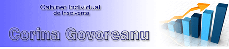 Despre Noi! Cabinetul individual de insolventa "GOVOREANU CORINA" este organizat in conformitate cu Legea nr. 85/2006. Suntem Membri ai Uniunii Nationale a Practicienilor in Insolventa din Romania inca din anul 2009 si suntem inscrisi in Tabloul UNPIR Bucuresti sub nr. 1B2689. Serviciile noastre se adreseaza firmelor interesate din Bucuresti si din judetele invecinate. Titularul acestui cabinet este economist - Govoreanu Corina- cu experienta in domeniul economic de peste 20 ani, specializat si in insolventa, avand ca si colaboratori in domeniul juridic-Cabinet de Avocat Mihalache Catalin si in evaluari de patrimoniu- S.C. TEHNOCONCEPT EXPERT S.R.L- membru ANEVAR . In gestionarea societatilor aflate in insolventa echipa noastra se pune in slujba interesului justitiei prin PROFESIONALISM, CUNOASTEREA IN DETALIU A LEGISLATIEI in domeniu, TRANSPARENTA, COMUNICARE, INFORMARE PROMTA A CREDITORILOR. Suntem asigurati la societatea OMNIASIG Vienna Insurance Group conform politei seria G nr. 801286/2012.
